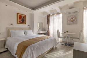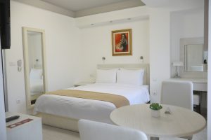 Excellent rooms in a very quiet neighborhood. I was impressed by the amount of details of service. There is a small parking lot right outside the apartments, there is a TV set, a couch and a vending machine at the lobby and when you enter your room it looks like an actual appartment. Highly recommended!